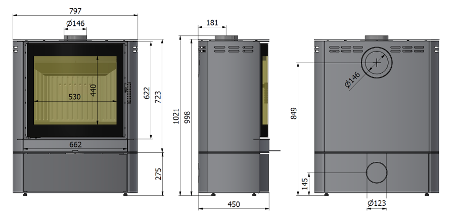 Wolnostojący piec na drewno ELIPSE F3 o eliptycznej bryle zapewnia najlepszą funkcjonalność użytkową. Ogromna łukowa panoramiczna szyba o szerokiej perspektywie sprawia wrażenie bliskości żywego ognia. Piec ELIPSE F3 jest z zamkniętą drzwiczkami bryłą.