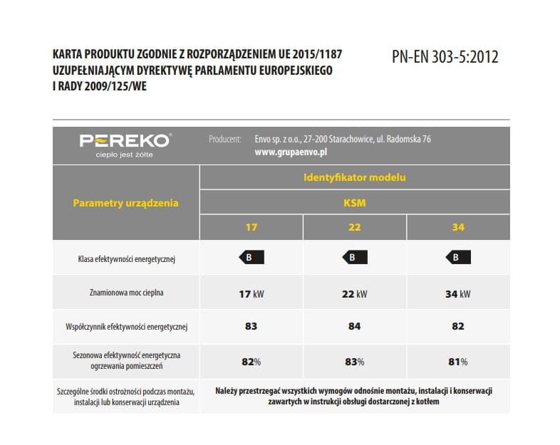 - Kocioł klasy 5 wg normy PN-EN 303-5:2012.