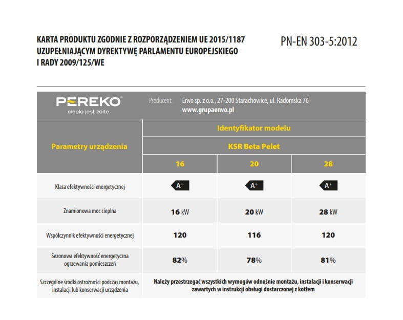 Nowoczesny kocioł KSR Beta Pelet dostosowany jest do spalania peletu – ekologicznego paliwa naturalnych zasobów odnawialnych. Granulki peletu, dzięki zastosowaniu palnika PELLAS, wypalają się niemal całkowicie. Funkcja automatycznego zapłonu, płynna regulacja mocy oraz niski pobór prądu sprawiają, że użytkowanie kotła jest komfortowe i ekonomiczne. Szeroka gama mocy umożliwia optymalny dobór urządzenia. Model KSR Beta Pelet posiada piątą klasę emisji wg normy PN EN 303-5:2012 oraz certyfikat ECODESIGN.