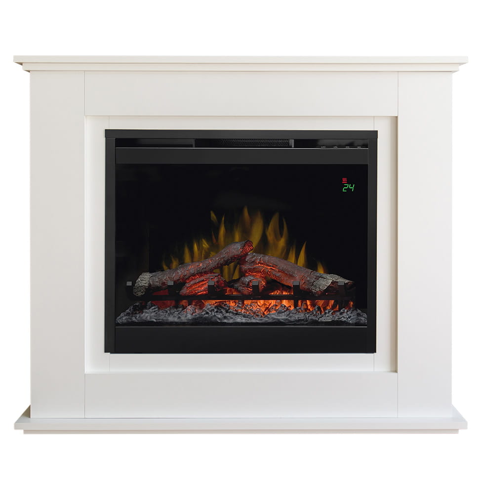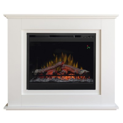 Elegancki kominek z klasyczną obudową w kolorze białym. Doskonale pasuje, zarówno do klasycznych, jak i nowoczesnych aranżacji. Wyposażony w termowentylator, termostat, programator czasowy, elektroniczny wyświetlacz i pilot zdalnego sterowania. Efekt płomienia Optiflame LED z paleniskiem płonące polana podświetlanym diodami LED.