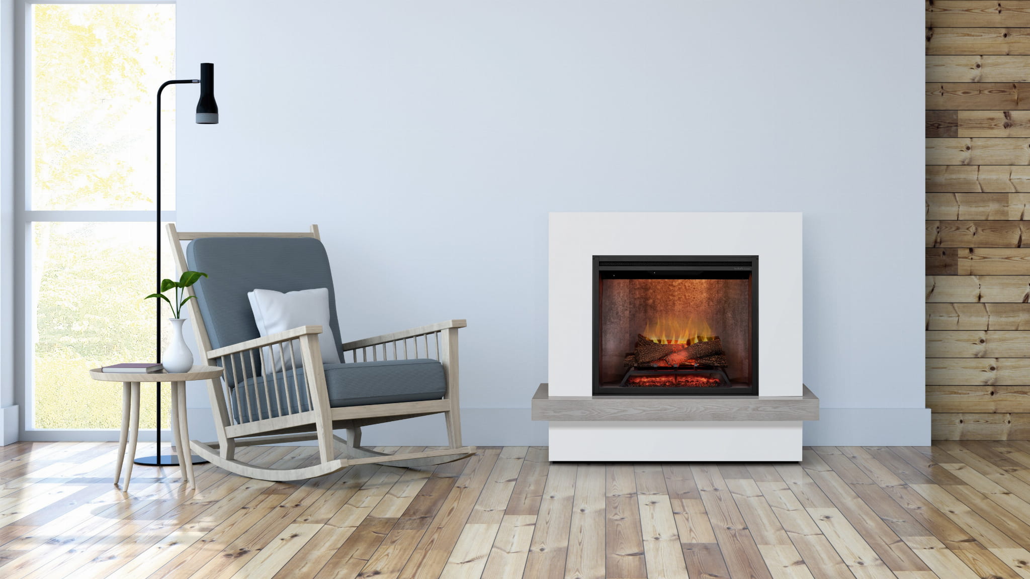 Stylowy, dużych rozmiarów kominek w kolorze białym z efektem płomienia Optiflame Revillusion. Kominek doskonale sprawdzi się w nowoczesnym wnętrzu, zwlaszcza w salonie lub pokoju dziennym. Model posiada obudowę z niewielką półką imitującą szare drewno, a jego wnętrze ozdabiają popielate, marmurowe akcenty. Sherwood charakteryzuje się wyjątkowo realistycznym obrazem paleniska - płomienie są większe, jaśniejsze oraz pojawiają się losowo dzięki opatentowanemu systemowi Revillusion®. Istnieje możliwość zmiany jasności, barwy i intensywności migotania ognia. Palenisko płonące polana podświetlane diodami LED mieni się niebieskimi oraz czerwonymi odcieniami. Kominek wyposażony jest w termowentylator, termostat, elektroniczny wyświetlacz, programator czasowy i pilot zdalnego sterowania. Efekt płomieni niezależny od trybu grzania. Zastosowanie technologii LED wydatnie obniża koszt użytkowania efektu płomienia – koszt pracy efektu świetlnego wynosi ok. 1 gr/1 h!